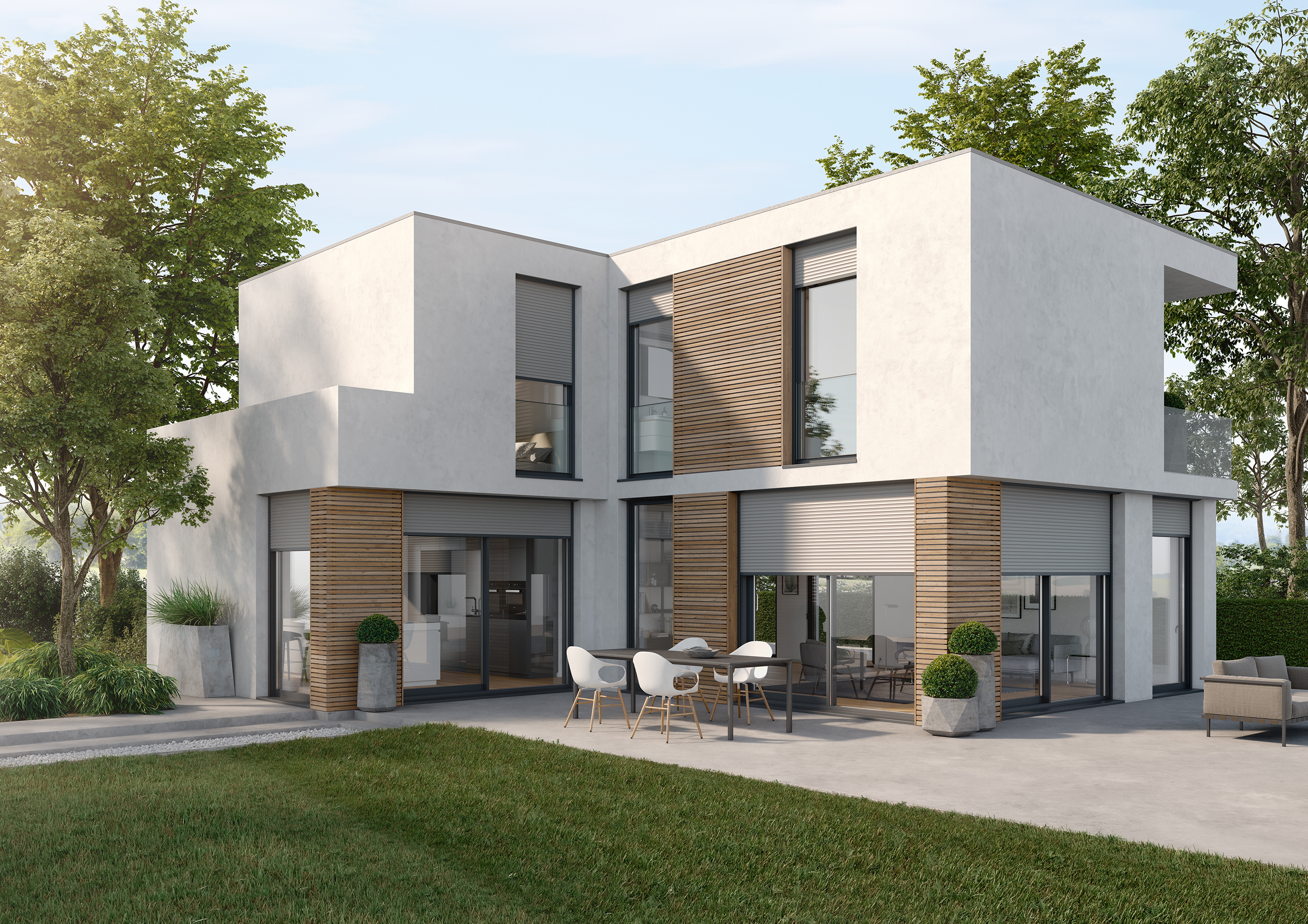 Top-mounted roller shutters