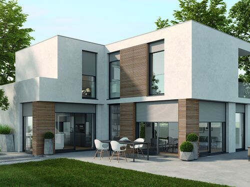 Les volets roulants en saillie sont installés devant la fenêtre et sont aussi bien adaptés aux constructions neuves qu'à une installation ultérieure dans le cadre d'une rénovation. Qu'il s'agisse de volets roulants modernes à lames, de s_onro®- ou de stores JalouRoll, nous avons la solution qui répond à n'importe quelle exigence, avec moustiquaire intégrée si nécessaire.