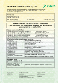 DEKRA Zertifikat Ladungssicherung (englisch)
