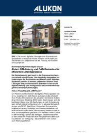 Um Planern und Architekten die tägliche Planungsarbeit weiter zu vereinfachen, stellt Alukon sukzessive alle erforderlichen Produktinformationen des aktuellen Sortiments für Building Information Modeling (BIM) bereit. Damit lassen sich die benötigten Daten bzw. 3D-Zeichungen je nach Anforderung ganz einfach digital konfigurieren und in gängige Softwarelösungen wie REVIT überführen. So werden Sonnenschutzprojekte mit Alukon Produkten noch besser skalierbar und eine Kostenkontrolle sowie Terminplanung lassen sich einfacher und transparenter gestalten. Ein weiterer Vorteil: Einmal in BIM hinterlegt, stehen alle wichtigen Detailinformationen zu den verbauten Produkten über den gesamten Lebenszyklus jederzeit zur Verfügung – das erleichtert nicht zuletzt auch Wartungsarbeiten.