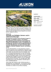 Mit über 500 Mitarbeitern und zwei Standorten im bayerischen Konradsreuth und im schwäbischen Haigerloch, agiert Alukon sowohl auf dem deutschen als auch auf dem europäischen Markt. Da es bei dem Vertrieb von Rollladen, Sonnen- und Insektenschutzprodukten vor allem auf schnelle und zuverlässige Lieferzeiten ankommt, setzt der Hersteller auf eine firmeneigene Logistik. Das sehr breit aufgestellte Produktportfolio ermöglicht es Alukon die Produkte in einer großen Variantenvielfalt anzubieten und auch individuelle Kundenwünsche umzusetzen. Der Hersteller bietet dabei Produktlösungen für die verschiedenen Anforderungen in Neu- und Bestandsbauten.