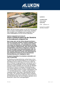 Nach etwas mehr als fünf Jahren Bauzeit hat Alukon – einer der führenden Anbieter im Bereich Rollladen, Sonnen- und Insektenschutz – den umfangreichen Umbau und Ausbau am Hauptsitz im oberfränkischen Konradsreuth erfolgreich abgeschlossen. Nach dem bereits 2019 fertiggestellten neuen Werk in Haigerloch verfügt Alukon nun an beiden Unternehmensstandorten über modernste Produktionsanlagen und Logistikbereiche auf dem neuesten Stand der Technik. Eine ideale Basis für eine erfolgreiche Fortsetzung des kontinuierlichen Wachstumskurses der vergangenen Jahre.