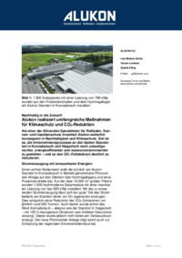 Einen echten Meilenstein stellt die kürzlich am Alukon Standort in Konradsreuth in Betrieb genommene Photovoltaik-Anlage auf den Dächern des Hochregallagers und einer Produktionshalle dar. Auf der über 10.000 m2 großen Fläche wurden 1.900 hochmoderne Solarmodule mit einer maximalen Leistung von fast 800 kWp installiert. Mit der zu erwartenden Stromerzeugung lässt sich ein guter Teil des Strombedarfs am Standort direkt vor Ort regenerativ erzeugen. Dies entspricht einer Reduktion der CO2-Emissionen um jährlich rund 200 Tonnen. Auch bisher wurde schon das Werk Konradsreuth – ebenso wie der Standort in Haigerloch – mit 100 % bezogenem Ökostrom vom Anbieter Naturstrom versorgt. Dieser wurde jedoch nicht direkt am Verbrauchsort erzeugt. Die neue Photovoltaik-Anlage trägt somit auch zur Entlastung der regionalen Stromverteilernetze bei.