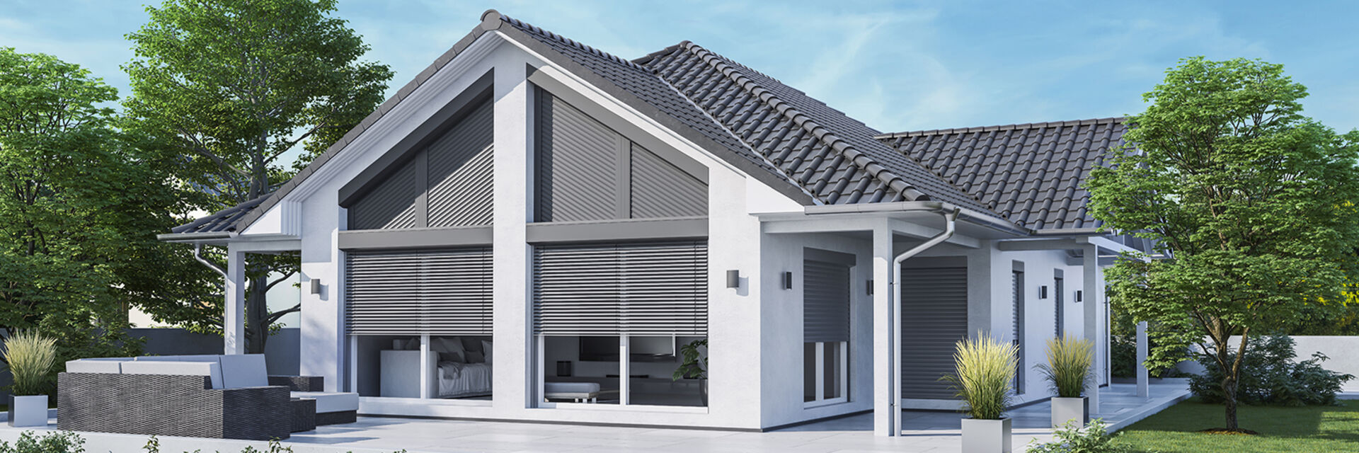 ALUKON Schrägrollladen sind für asymmetrische, schräge Fenster von 0,5° bis 45° geeignet. Diese Rollladen bieten zum Beispiel bei Giebelfenstern eine optimale Lösung. Sie fügen sich harmonisch in das Gesamtbild der Fassade ein und können im Neubau und bei Altbaumodernisierungen eingesetzt werden. Die Schrägrollladen schließen – wie normale Rollladen – von oben nach unten.